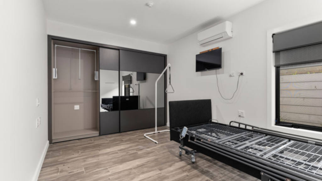 This new, purpose-built fully accessible home has three bedrooms, two bathrooms and two living areas and has been designed with assistive technologies throughout.